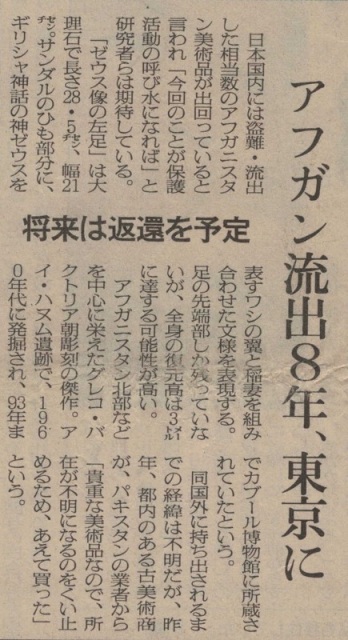結局、友人の美術館で返還するまで預かってくれることになった。所有者と値段交渉して、買い取った。友人が引き取りに私のギャラリーにやって来て、アルミケースに入った足を持ち帰った。ちょうどその時ジャーナリストの別の友人とすれ違った。この記者も、このゼウスの足の置かれている状況を、私が時々説明しているのでよく知っていて、「いよいよですか」と、すぐ理解できたようであった。彼が同僚に連絡したらしく、次の日氏の友人の記者が私にインタビューに来た。