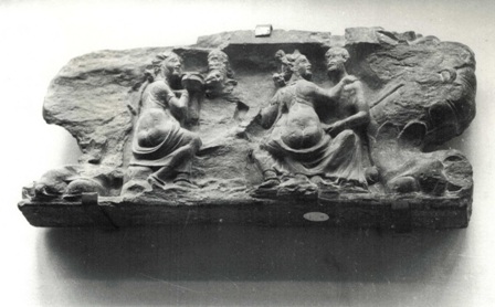 その中の一枚の化粧皿と、この有名なガンダーラ彫刻とを比較してみる。