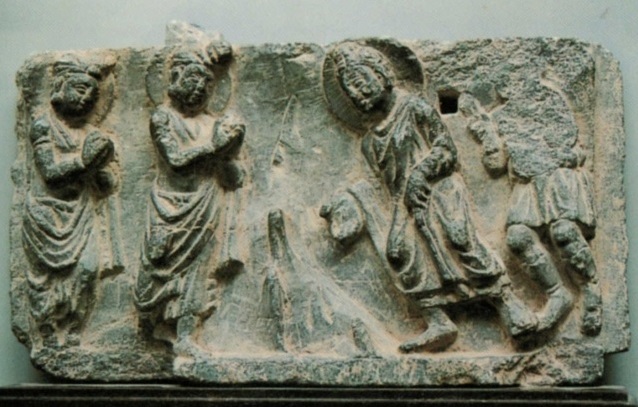 私の知る限り、この二面しかない。貴重な浮彫である。図1は、先年ニューヨークのオークションに出たのち、ブラジルの仏伝図をたくさん集めている人の所有になった。